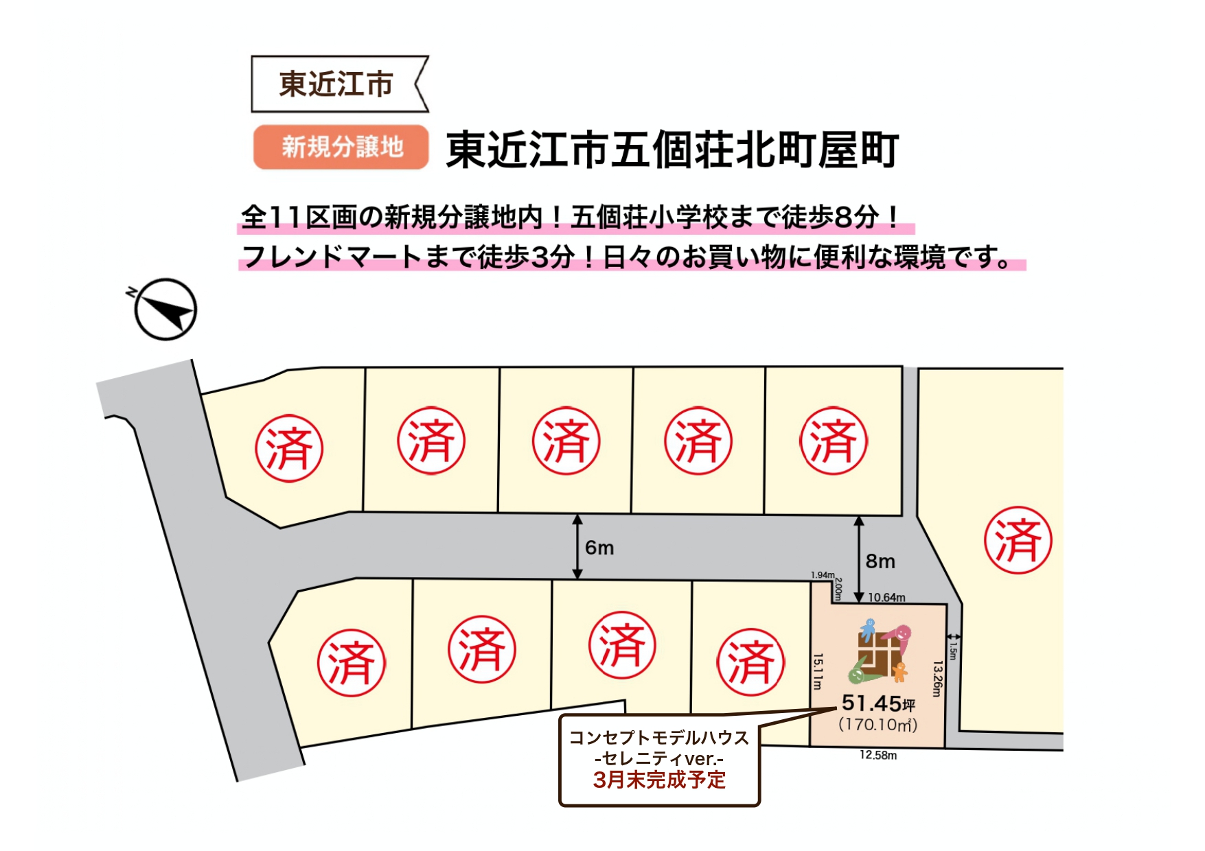 朝にゆとり、帰りに安心、五個荘小学校まで徒歩8分の立地!